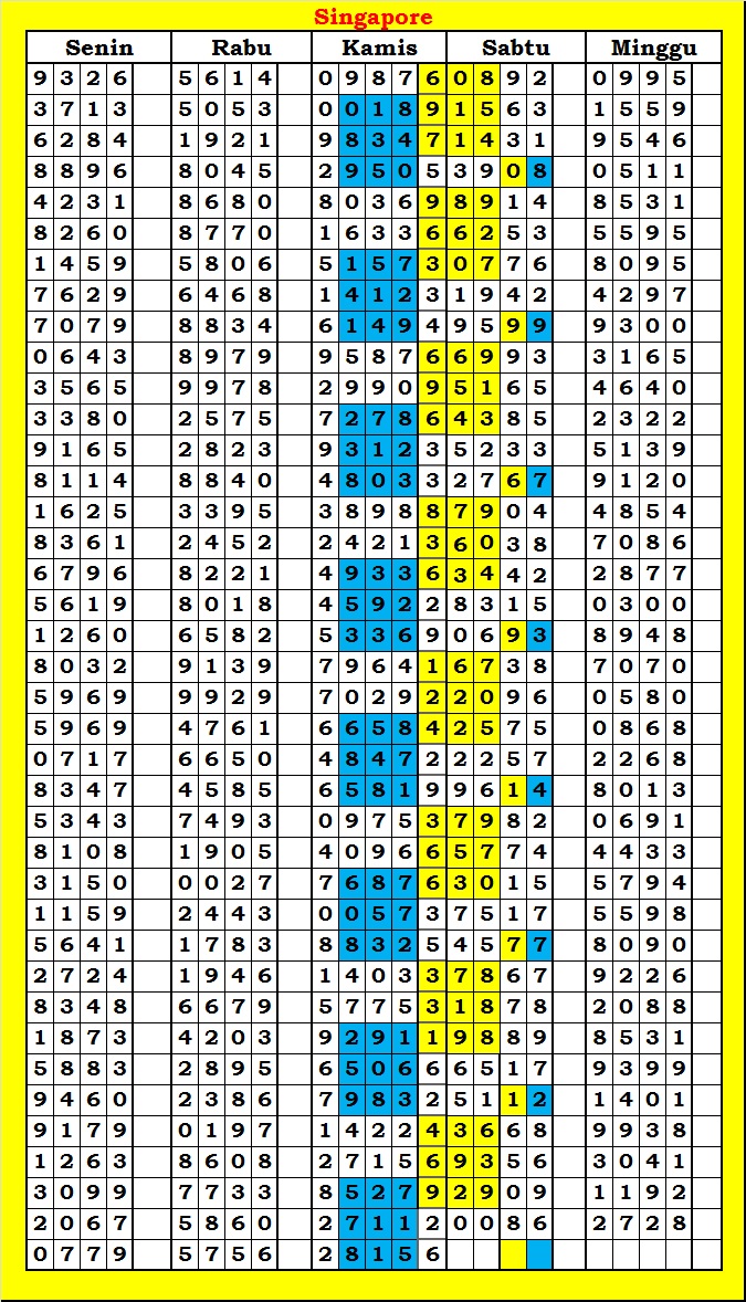 MASTER SINGAPURA Sabtu, 06-12-2025 Merupakan Prediksi Otomatis yang menggabungkan Metode Kalender Togel Dengan Rumus-rumus kontrol yang sudah terbukti keakuratanya.Gunakan Aplikasi Rekap untuk mendapatkan LN TOP. Harap Maklum Jika kadang meleset MASTER SINGAPURA kita. Jadikan ini sebagai perbandingan saja dan tetap UPS