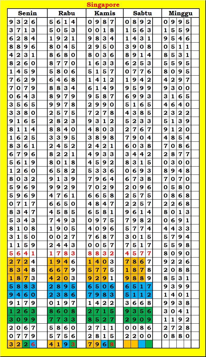 MASTER SINGAPURA Sabtu, 06-12-2025 Merupakan Prediksi Otomatis yang menggabungkan Metode Kalender Togel Dengan Rumus-rumus kontrol yang sudah terbukti keakuratanya.Gunakan Aplikasi Rekap untuk mendapatkan LN TOP. Harap Maklum Jika kadang meleset MASTER SINGAPURA kita. Jadikan ini sebagai perbandingan saja dan tetap UPS