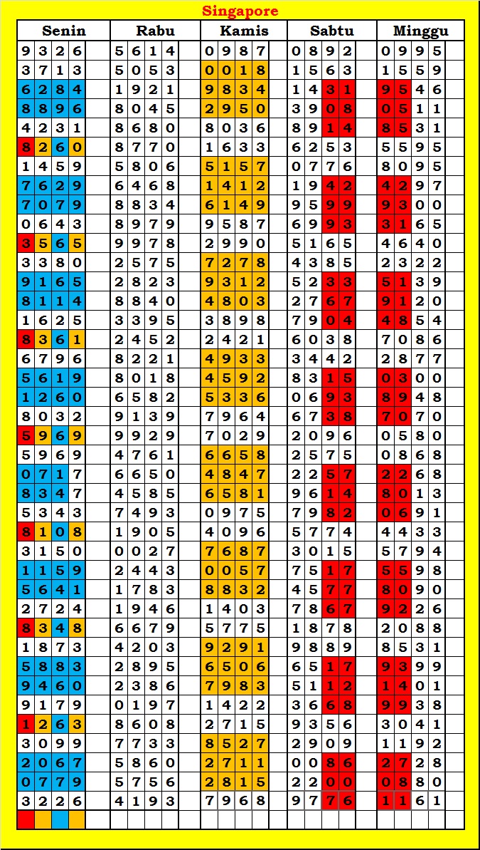 MASTER SINGAPURA Sabtu, 06-12-2025 Merupakan Prediksi Otomatis yang menggabungkan Metode Kalender Togel Dengan Rumus-rumus kontrol yang sudah terbukti keakuratanya.Gunakan Aplikasi Rekap untuk mendapatkan LN TOP. Harap Maklum Jika kadang meleset MASTER SINGAPURA kita. Jadikan ini sebagai perbandingan saja dan tetap UPS