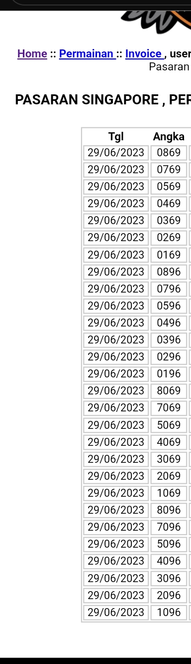 MASTER SINGAPURA Sabtu, 06-12-2025 Merupakan Prediksi Otomatis yang menggabungkan Metode Kalender Togel Dengan Rumus-rumus kontrol yang sudah terbukti keakuratanya.Gunakan Aplikasi Rekap untuk mendapatkan LN TOP. Harap Maklum Jika kadang meleset MASTER SINGAPURA kita. Jadikan ini sebagai perbandingan saja dan tetap UPS