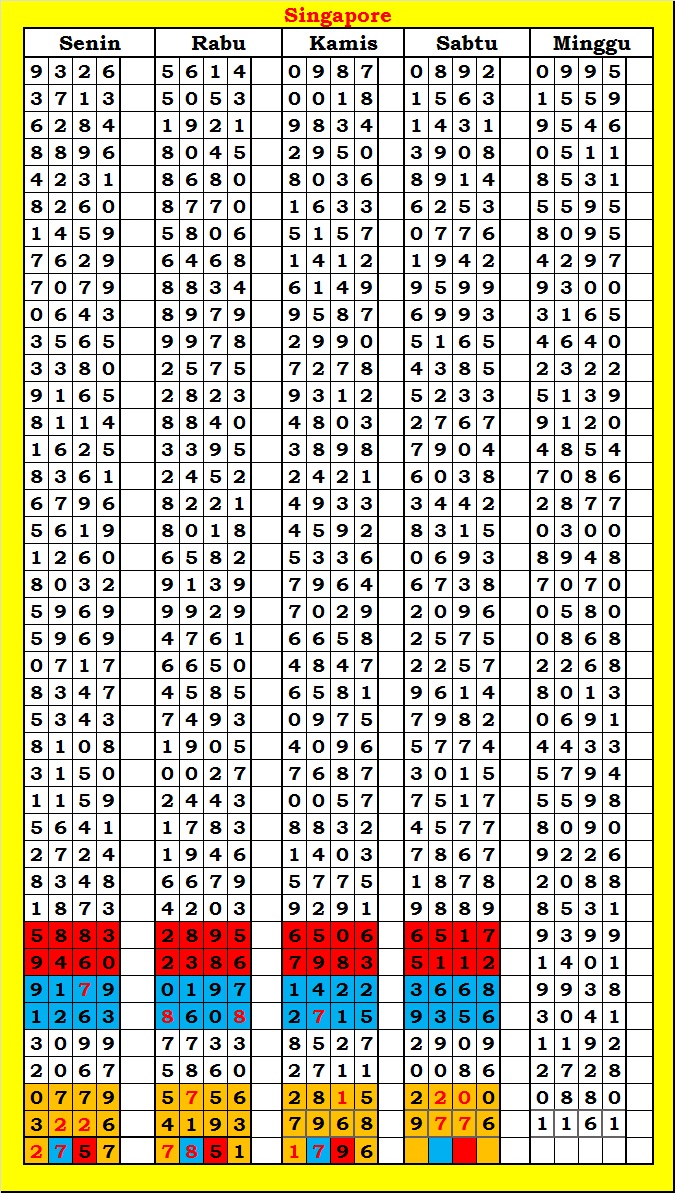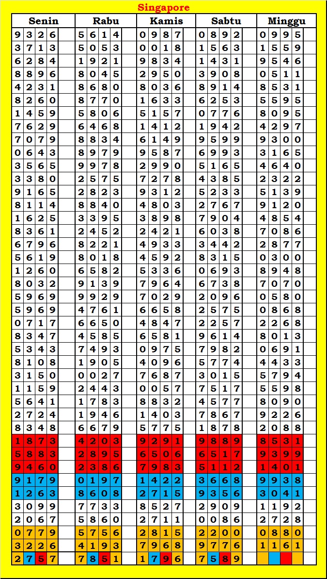 MASTER SINGAPURA Sabtu, 06-12-2025 Merupakan Prediksi Otomatis yang menggabungkan Metode Kalender Togel Dengan Rumus-rumus kontrol yang sudah terbukti keakuratanya.Gunakan Aplikasi Rekap untuk mendapatkan LN TOP. Harap Maklum Jika kadang meleset MASTER SINGAPURA kita. Jadikan ini sebagai perbandingan saja dan tetap UPS