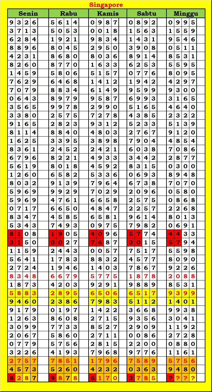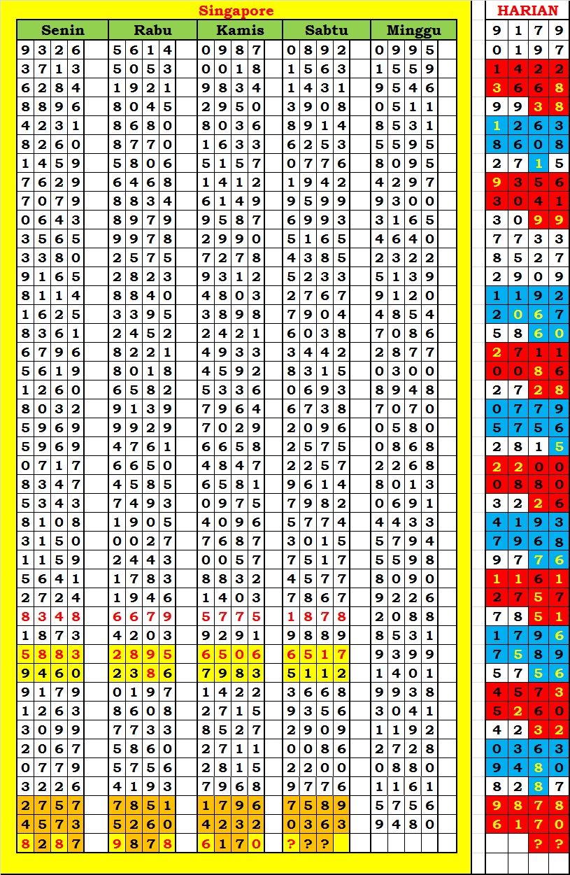 MASTER SINGAPURA Sabtu, 06-12-2025 Merupakan Prediksi Otomatis yang menggabungkan Metode Kalender Togel Dengan Rumus-rumus kontrol yang sudah terbukti keakuratanya.Gunakan Aplikasi Rekap untuk mendapatkan LN TOP. Harap Maklum Jika kadang meleset MASTER SINGAPURA kita. Jadikan ini sebagai perbandingan saja dan tetap UPS