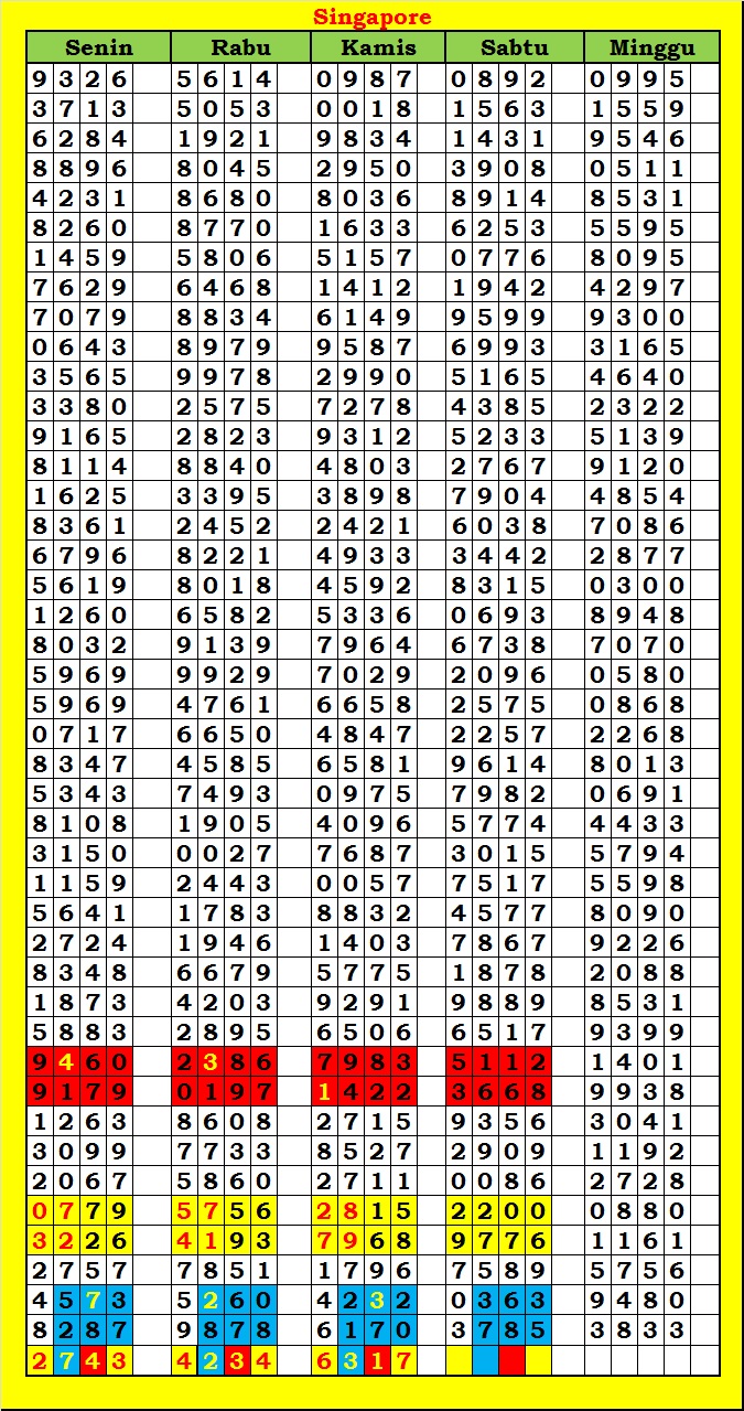 MASTER SINGAPURA Sabtu, 06-12-2025 Merupakan Prediksi Otomatis yang menggabungkan Metode Kalender Togel Dengan Rumus-rumus kontrol yang sudah terbukti keakuratanya.Gunakan Aplikasi Rekap untuk mendapatkan LN TOP. Harap Maklum Jika kadang meleset MASTER SINGAPURA kita. Jadikan ini sebagai perbandingan saja dan tetap UPS