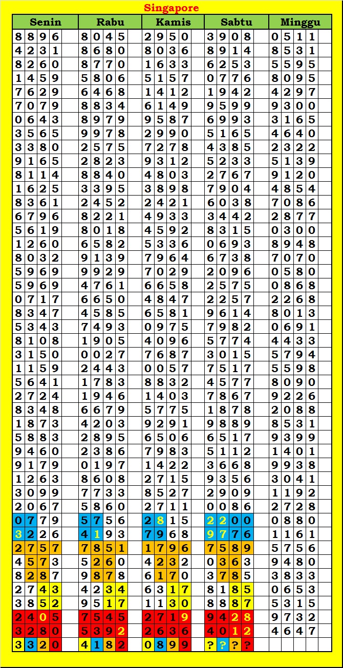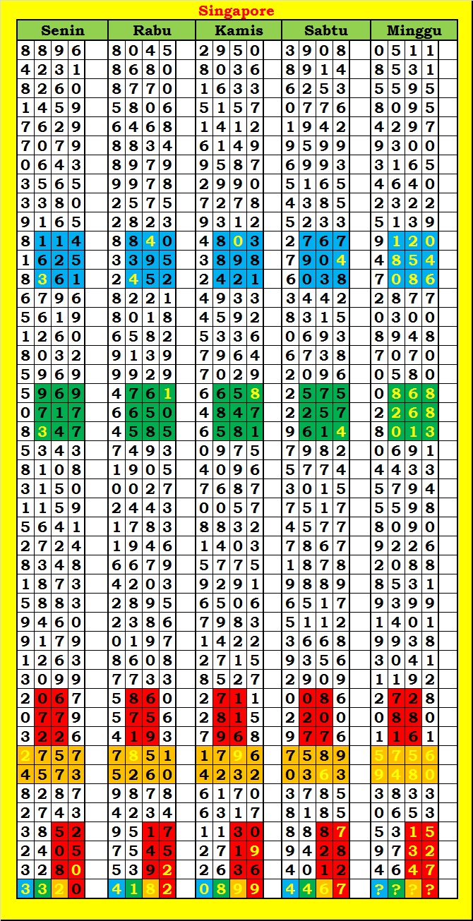 MASTER SINGAPURA Rabu, 03-12-2025 Merupakan Prediksi Otomatis yang menggabungkan Metode Kalender Togel Dengan Rumus-rumus kontrol yang sudah terbukti keakuratanya.Gunakan Aplikasi Rekap untuk mendapatkan LN TOP. Harap Maklum Jika kadang meleset MASTER SINGAPURA kita. Jadikan ini sebagai perbandingan saja dan tetap UPS