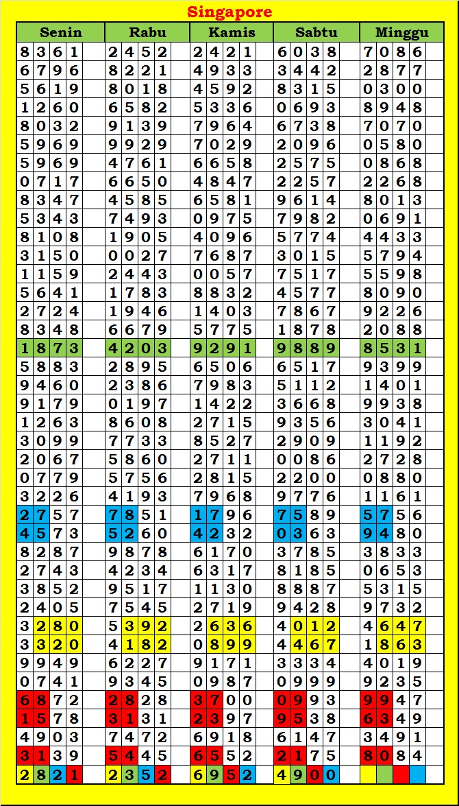 MASTER SINGAPURA Sabtu, 29-11-2025 Merupakan Prediksi Otomatis yang menggabungkan Metode Kalender Togel Dengan Rumus-rumus kontrol yang sudah terbukti keakuratanya.Gunakan Aplikasi Rekap untuk mendapatkan LN TOP. Harap Maklum Jika kadang meleset MASTER SINGAPURA kita. Jadikan ini sebagai perbandingan saja dan tetap UPS