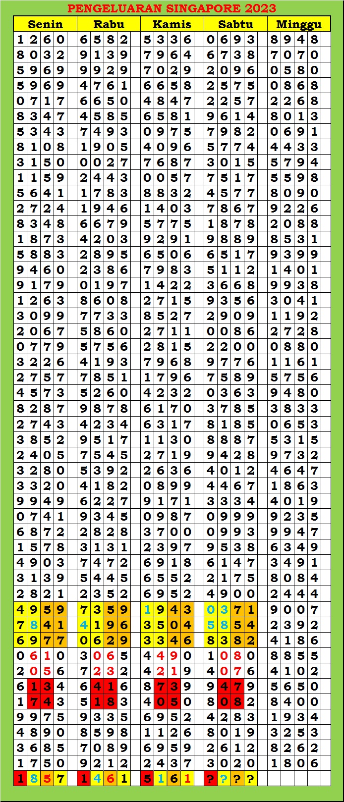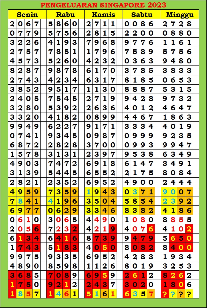 MASTER SINGAPURA Rabu, 26-11-2025 Merupakan Prediksi Otomatis yang menggabungkan Metode Kalender Togel Dengan Rumus-rumus kontrol yang sudah terbukti keakuratanya.Gunakan Aplikasi Rekap untuk mendapatkan LN TOP. Harap Maklum Jika kadang meleset MASTER SINGAPURA kita. Jadikan ini sebagai perbandingan saja dan tetap UPS