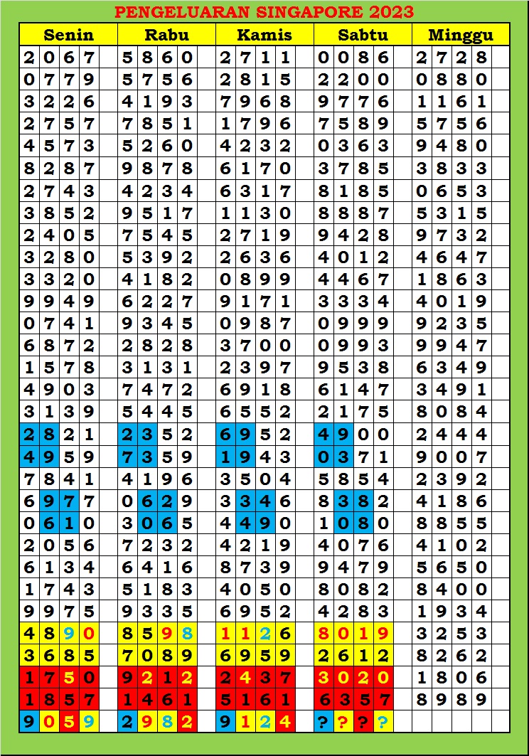 MASTER SINGAPURA Rabu, 26-11-2025 Merupakan Prediksi Otomatis yang menggabungkan Metode Kalender Togel Dengan Rumus-rumus kontrol yang sudah terbukti keakuratanya.Gunakan Aplikasi Rekap untuk mendapatkan LN TOP. Harap Maklum Jika kadang meleset MASTER SINGAPURA kita. Jadikan ini sebagai perbandingan saja dan tetap UPS
