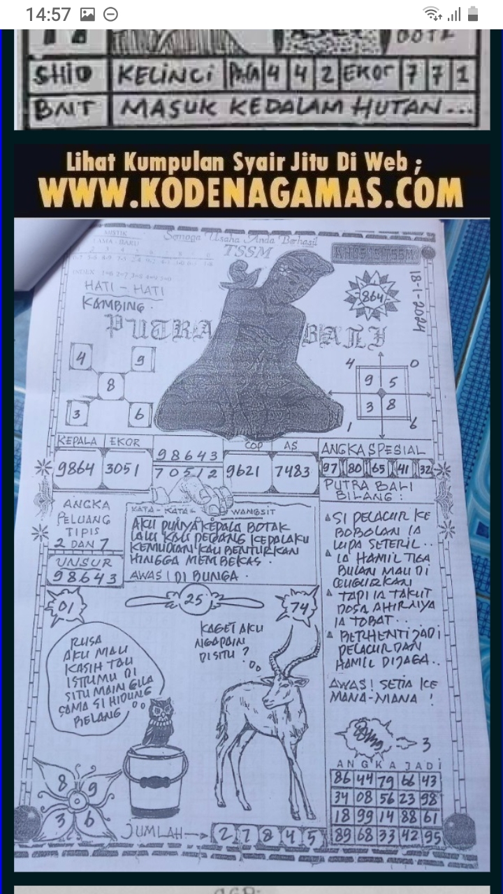 Prediksi Ini Berubah secara otomatis sesuai hari dan result pasaran masing-masing. Untuk melihat prediksi sebelumnya klik tombol nomor hitam diatas