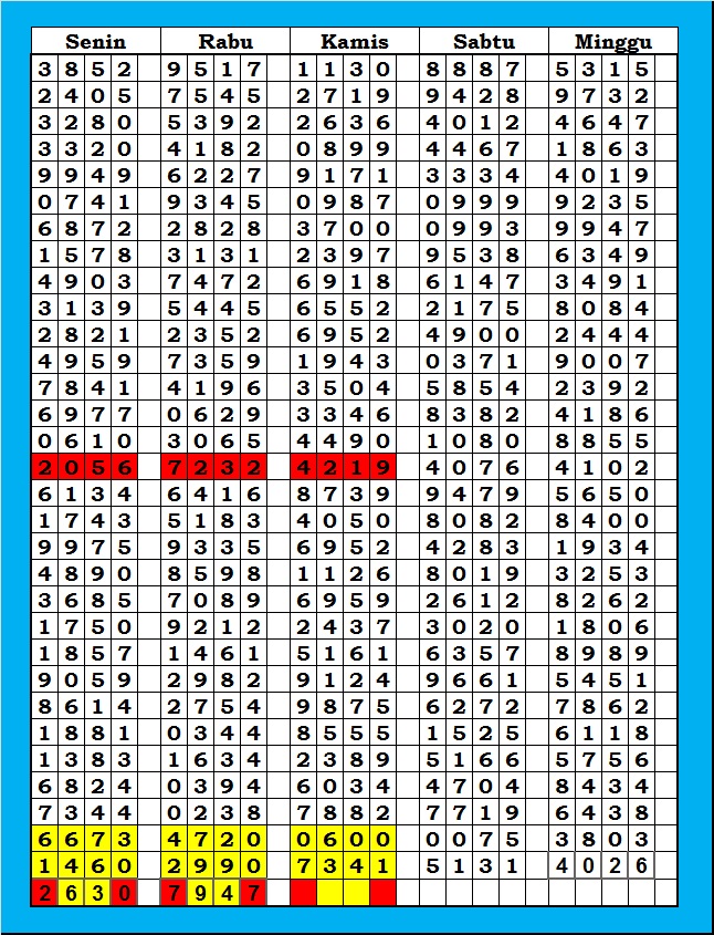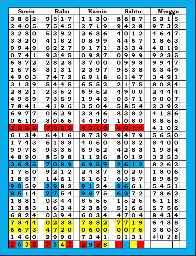 Prediksi Ini Berubah secara otomatis sesuai hari dan result pasaran masing-masing. Untuk melihat prediksi sebelumnya klik tombol nomor hitam diatas