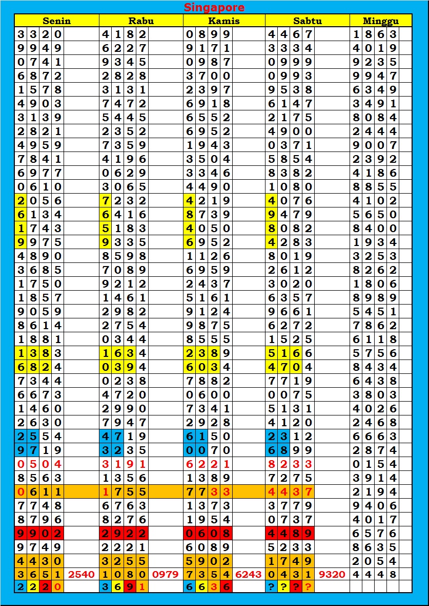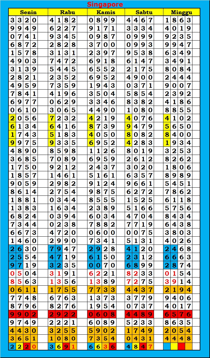 MASTER SINGAPURA Minggu, 07-12-2025 Merupakan Prediksi Otomatis yang menggabungkan Metode Kalender Togel Dengan Rumus-rumus kontrol yang sudah terbukti keakuratanya.Gunakan Aplikasi Rekap untuk mendapatkan LN TOP. Harap Maklum Jika kadang meleset MASTER SINGAPURA kita. Jadikan ini sebagai perbandingan saja dan tetap UPS