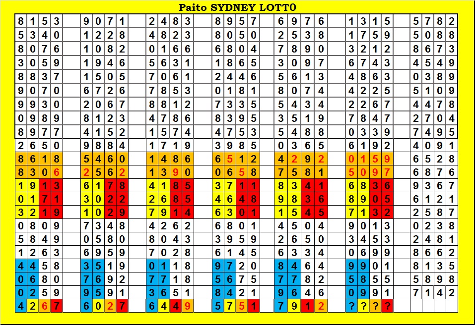 MASTER SYDNEY LOTTO Sabtu, 06-12-2025 Merupakan Prediksi Otomatis yang menggabungkan Metode Kalender Togel Dengan Rumus-rumus kontrol yang sudah terbukti keakuratanya.Gunakan Aplikasi Rekap untuk mendapatkan LN TOP. Harap Maklum Jika kadang meleset MASTER SYDNEY LOTTO kita. Jadikan ini sebagai perbandingan saja dan tetap UPS